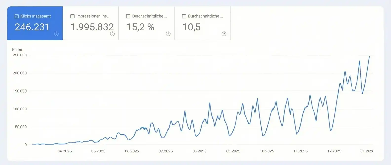 - Umsatz: Gewachsen um 46%, durch bessere lokale Sichtbarkeit in Köln und DE/CH.